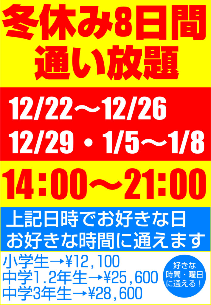 残りわずか!冬期入会生を募集中!(11/26更新 小学生残り1名様、中学生残り2名様まで)