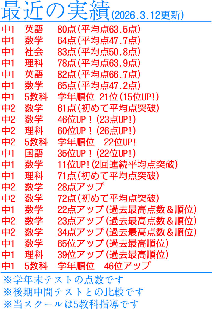 また、全生徒を教室長が直接指導しますので、毎回先生が変わるということもありません。