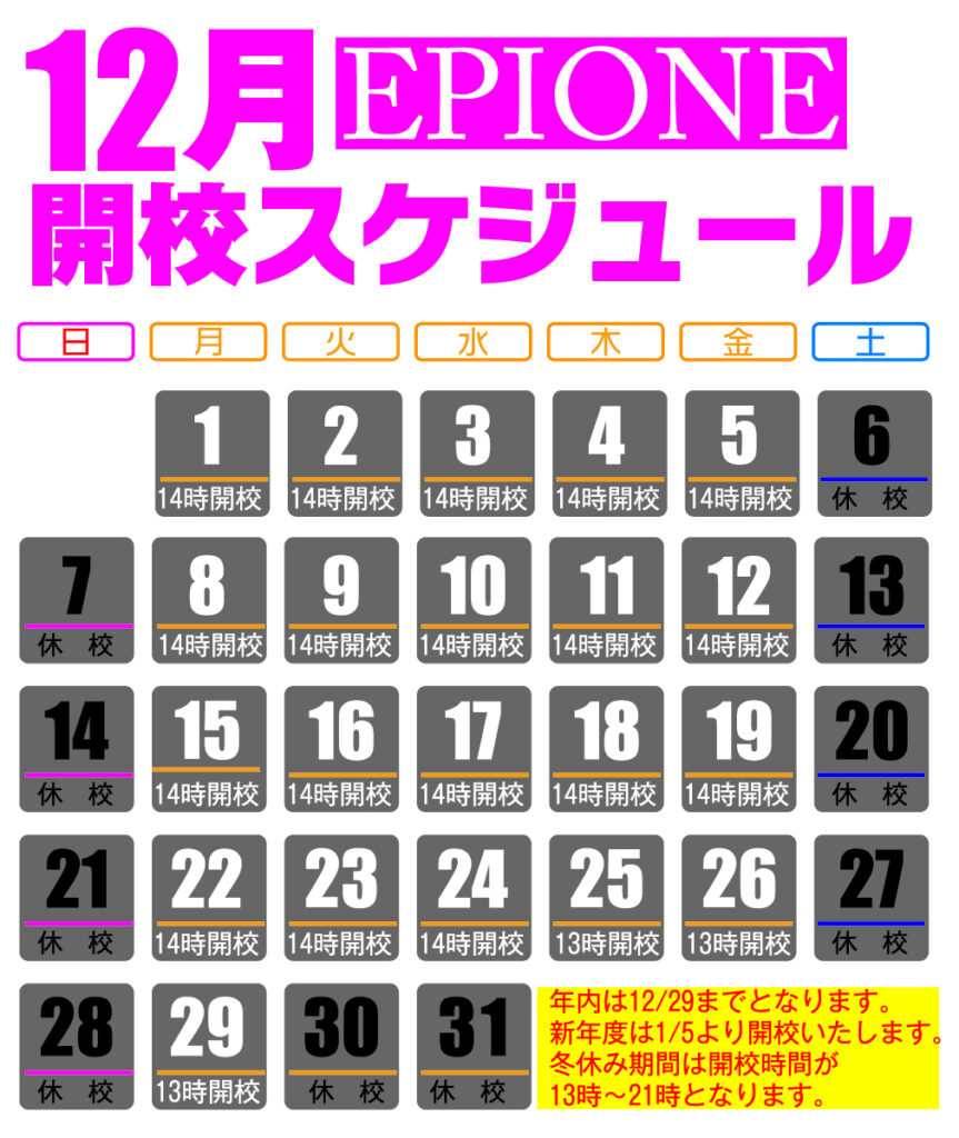 開校日や開校時間は変更となる場合がございます。21時にクローズとなります。