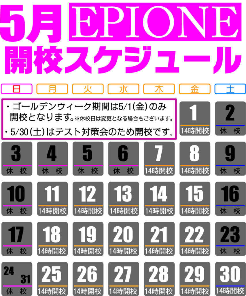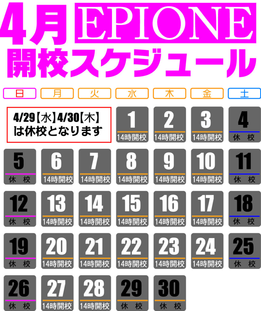 4/29(水)・4/30(木)は休校日となります。